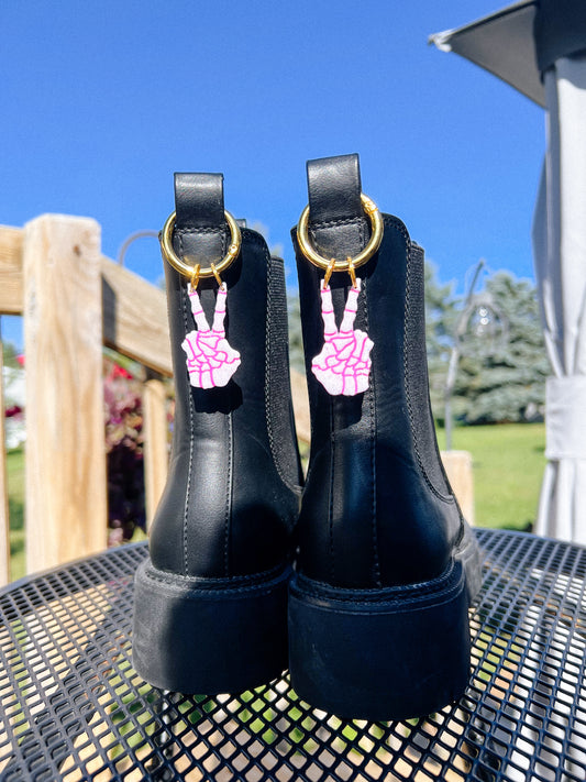 Skeleton Hands Peace Sign Pink Glitter Boot Charms